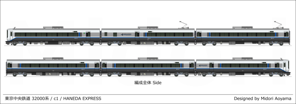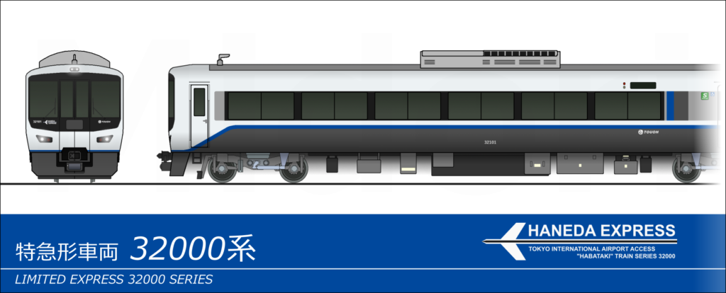 基本的な車両設計は30000系を基としつつ、上記項目に従って改変を加えています。愛称は「HANEDA EXPRESS」とし、外観は青とグレー系の塗装を施しています。汎用特急車両と同じく他編成との併結に対応しており、6両2編成を繋いでの12両編成や、汎用特急車両を繋いでの増結が可能となっています。スーツケース等の大きな荷物を持つ利用者が想定されることから、乗車定員が多い3~6両目には乗降扉を2つ配しています。