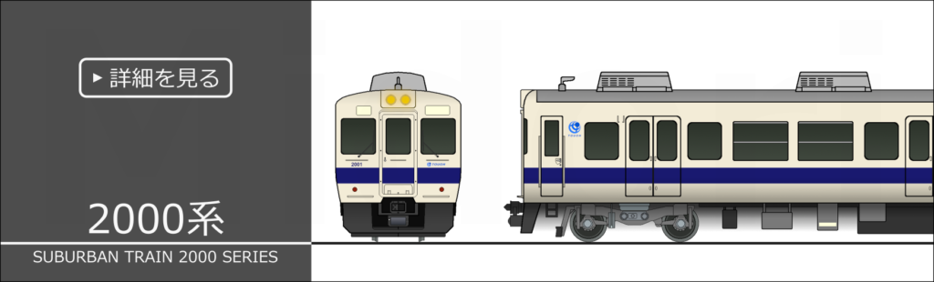 近郊形車両は長距離路線向けの車両です。 乗車時間が長いことから快適性を優先した構造となっており、座席は扉は片側3扉ずつ、座席はセミクロスシートとしています(例外あり)。また一部車両にはトイレが設置されています。